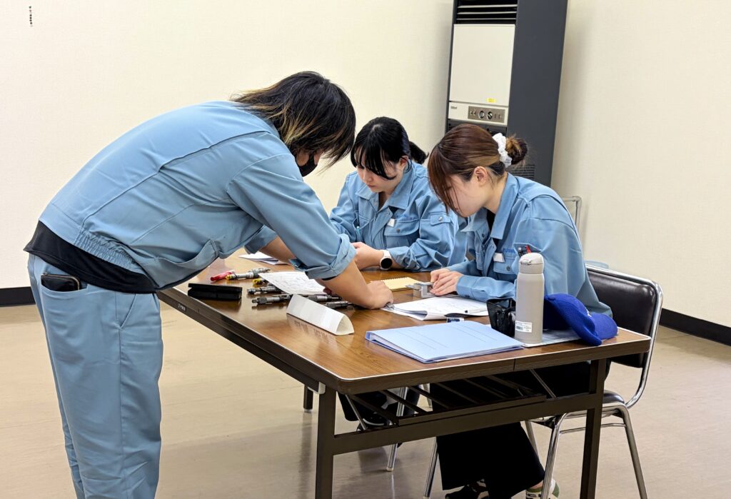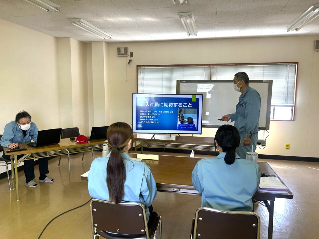研修では、社会人としての基本マナー、会社の各部門の役割、図面の読み方や工具の使い方など、今後の業務に必要となる基礎知識を中心に学んでいただきました。